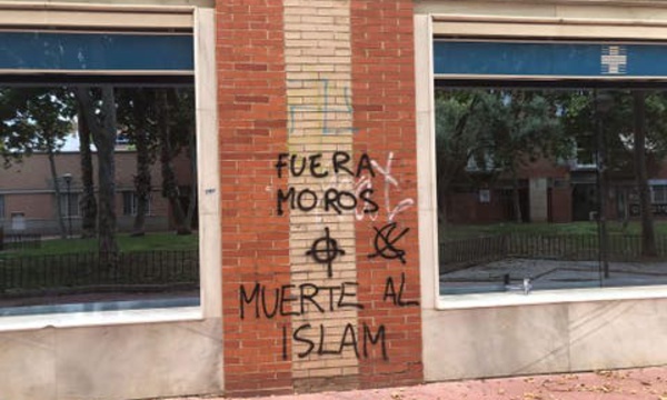 ناظور سيتي ـ متابعة يستمر الاعتداء على المهاجرين المغاربة بإسبانيا، وبالضبط في مدينة مورسيا الواقعة شرق إسبانيا، حيث تعرض مسجد في ذات المنطقة لهجوم “عنصري”، يوم أمس الأربعاء 7 يوليوز الجاري، بعد أقل من شهر على الاغتيال الوحشي لمواطن مغربي في المنطقة ذاتها. وقد كتب المهاجمون على جدار المسجد -الذي يقع في منطقة (كابيزو دي توريس) وافتتح عام 2018- عبارات منها “لا للإسلام” و”أوقفوا الغزو” و”سيادة إسبانيا لا يمكن التفاوض عليها”. كما ترك المهاجمون أيضا رأس خنزير خارج المسجد وبداخله سكين، في إشارة تحمل