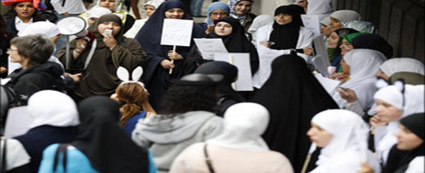 مظاهرة ضد”حظر إرتداء الحجاب ” في بروكسل