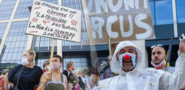 ناظورسيتي -متابعة نزل عشرات البلجيكيين إلى شوارع العاصمة بروكسيل وانخرطوا في احتجاجات تنديدا بالقيود التي فرضتها الحكومة في إطار إجراءاتها لمكافحة تفشي فيروس كورونا. واحتشد ما يناهز 400 شخص قبالة مقرّ وزارة المالية إثر دعوة وجّهتها مجموعة تسمّى "جنون الفيروس" في منصّات التواصل الاجتماعي. وردّد المحتجون شعارات من قبيل "الحرية" و"لا تلمس حقوقي"، تنديدا بقرار الحكومة إلزامية الجميع بوضع الكمامات في كل بروكسيل. ورفعوا لافتات تحمل رسائلَ مثل "لا للكمامة" و"لا نريد اللقاح" و"الحرية تبدأ عند انتهاء
