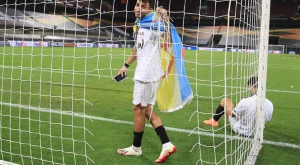 الريفي منير الحدادي يحتفل بفوز فريقه بكأس الدوري الأوربي برفع العلم المغربي والأمازيغي
