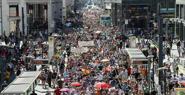 ناظورسيتي -متابعة في الوقت الذي أبدت السّلطات الألمانية "قلقها" بسبب ارتفاع أعداد المصابين بالفيروس في الفترة الأخيرة، انخرط الآلاف، اليوم السبت في العاصمة برلين، في احتجاجات حاشدة ضدّ إعادة فرض قيود فيروس كورونا، مطالبين السّلطات المختصة بإعلان “نهاية الوباء”. وشهدت الاحتجاجات رفع شعارات من قبيل “كورونا إنذار كاذب” و“نحن مرغمون على وضع كمامة” و”أوقفوا ذعر كورونا". وشدّدوا على أنهم هنا ليهتفوا عاليا ضدّ حرمانهم من حريتهم، مطالبين بإعادة تمكينهم من حقوقهم الأساسية. وقد تم الإعداد للاحتجاجات،