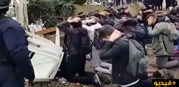 شاهدوا.. الشرطة الفرنسية تحتجز عشرات التلاميذ بشكل مهين لمنعهم من التظاهر