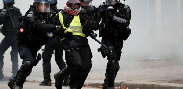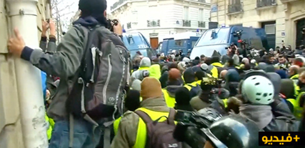 ناظورسيتي: وكالات ارتفعت، السبت، حدة المصادمات بين قوات الأمن الفرنسية وأنصار حركة السترات الصفراء في باريس، مما دفع السلطات إلى نشر مدرعات للمرة الأولى في العاصمة منذ سنوات، في وقت ارتفع عدد الجرحى والموقوفين من المتظاهرين الذين رفعوا سقف مطالبهم نحو إقالة الرئيس إيمانيول ماكرون. وأظهرت لقطات فيديو قوات الأمن وهي تنشر مدرعات في محيط قوس النصر في باريس، في محاولة لإبعاد المتظاهرين الذين يخرجون إلى الشوارع للأسبوع الرابع على التوالي. وذكرت مراسلتنا بأن عدد المدرعات المنشورة بلغت 14 في باريس،