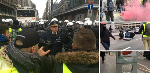 بالصور..شرطة بروكسل تدخل في مواجهة مع أفراد من السترات الصفراء