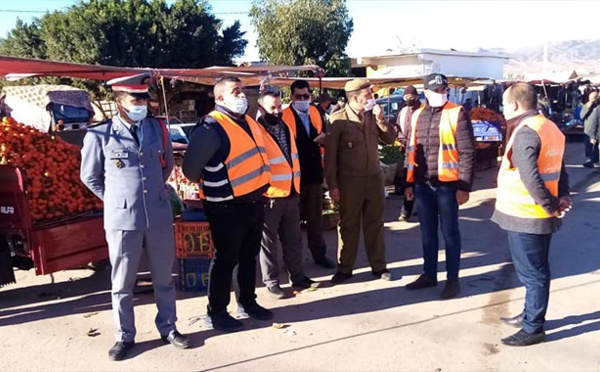 ناظورسيتي من بن الطيب قامت السلطات المحلية بجماعة بن الطيب وبتنسيق مع عناصر الدرك الملكي، صبيحة يوم أمس الأربعاء 29 دجنبر الجاري، بتنظيم حملة تحسيسية توعوية للوقاية من فيروس كورونا المستجد، وذلك تزامنا مع السوق الأسبوعي للجماعة. وقاد هذه الحملة التوعوية، ممثل السلطة المحلية وأعوان السلطة، ورجال الدرك الملكي والقوات المساعدة، حيث جابت مختلف أماكن السوق الأسبوعي. وتخللت هذه الحملة التحسيسية التوعوية نصائح استفاد منها عدد من المواطنات والمواطنين حول خطورة الفيروس التاجي، كما عمل أعوان السلطة على