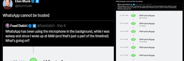 ناظورسيتي: أيوب الصابري أعرب الملياردير الأمريكي إيلون ماسك عن عدم ثقته في تطبيق التواصل الفوري "واتساب"، الذي يستخدمه أكثر من 2 مليار شخص حول العالم. وذلك بعد أن نشر أحد المستخدمين على تويتر صورة توضح تشغيل التطبيق للميكروفون تلقائيًا في الخلفية، مما أثار تساؤلات حول الأمان والخصوصية فيما يتعلق بالتطبيقات الشهيرة المستخدمة على الهواتف المحمولة. وتتزايد المخاوف من استخدام بيانات المستخدمين للتجسس عليهم، وذلك بمجرد جمعها من خلال ميزات مختلفة في التطبيقات. وتتعرض تطبيقات التراسل الفوري مثل