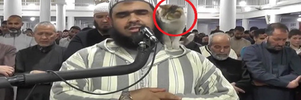 شاهدوا.. قطة تصعد على كتف الإمام خلال صلاة التراويح
