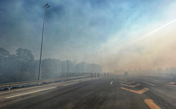 اندلاع حريق ضخم بمدخل الطريق السيار شمال المغرب والرياح القوية تساهم في انتشار النيران